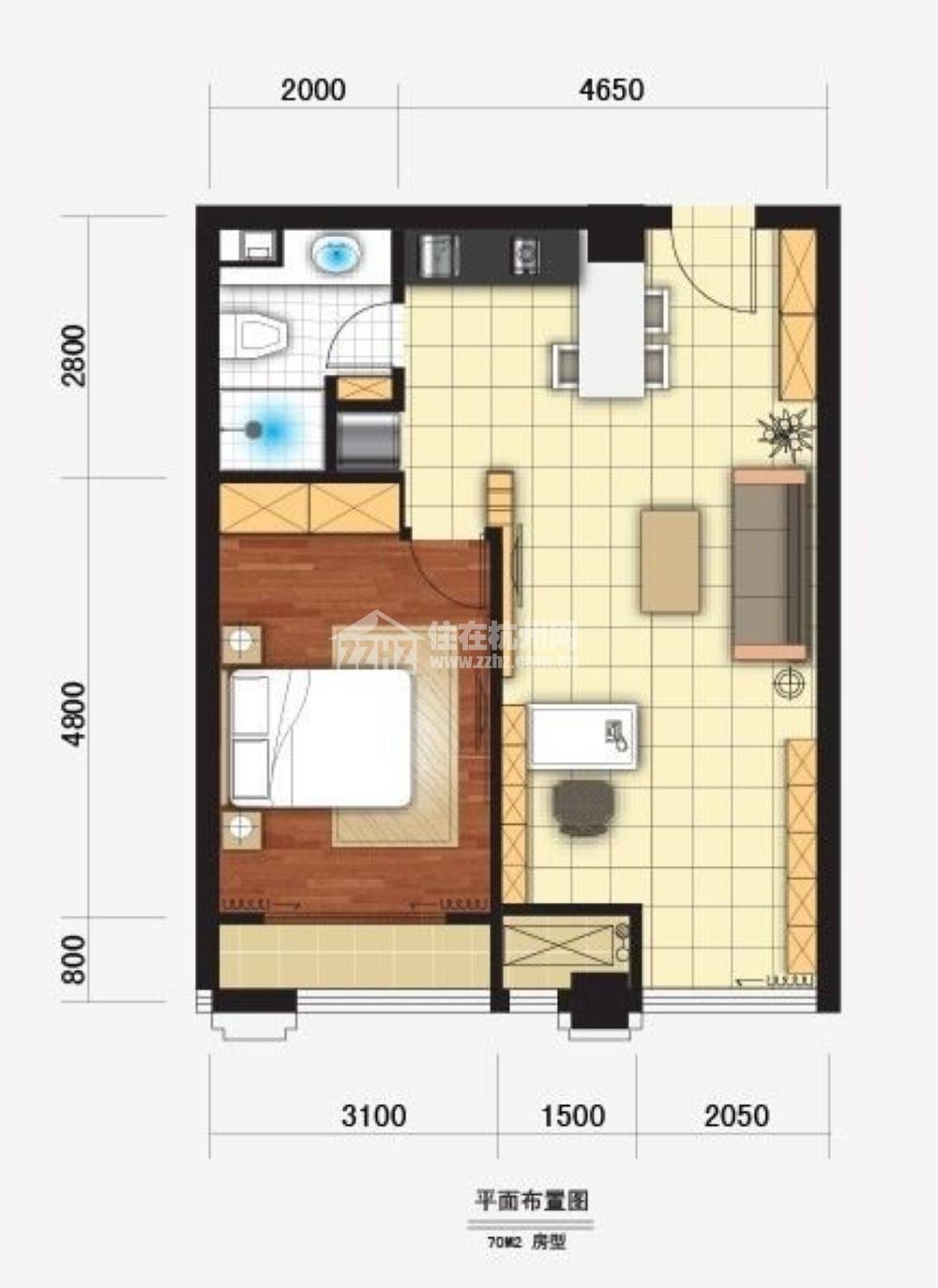 1室2厅1卫 建筑面积70平米