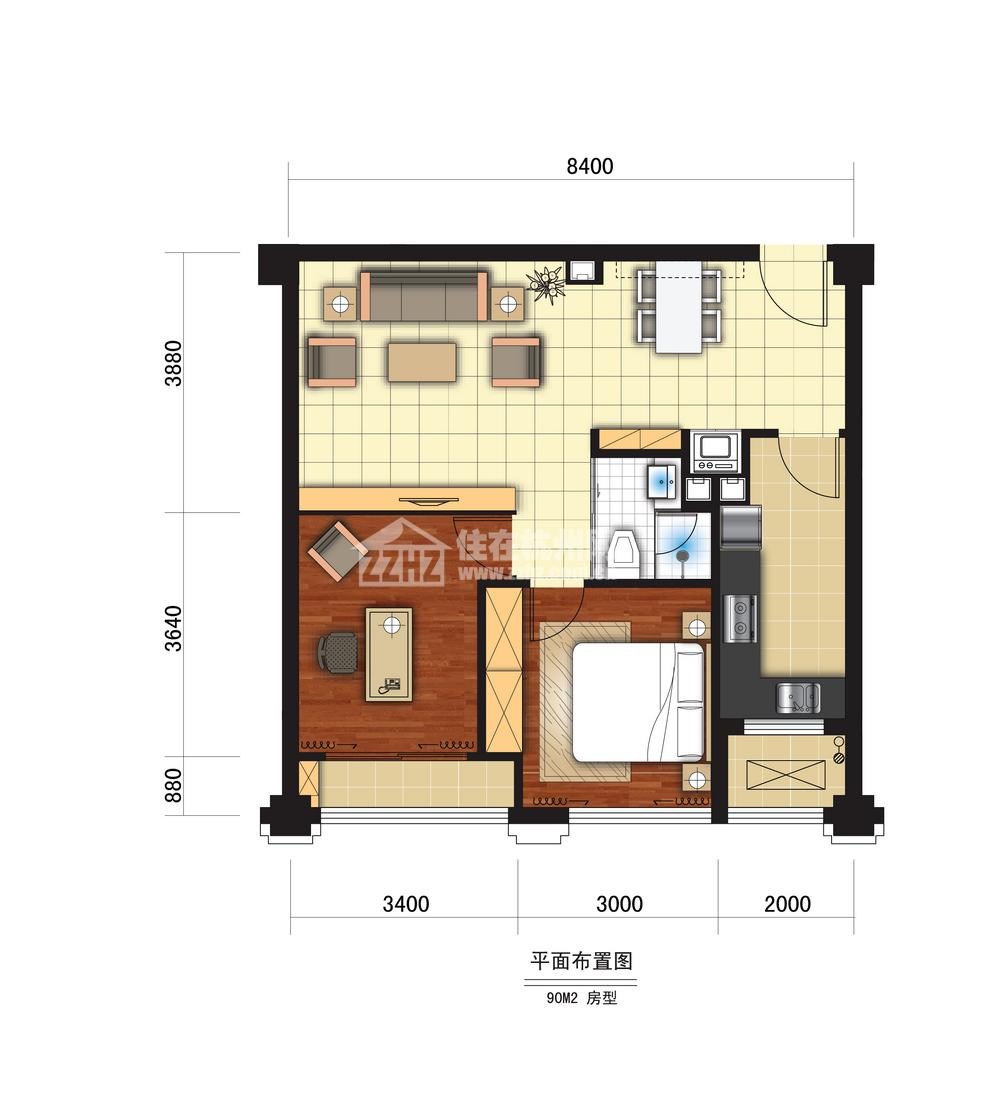 2室2厅1卫 建筑面积90平米