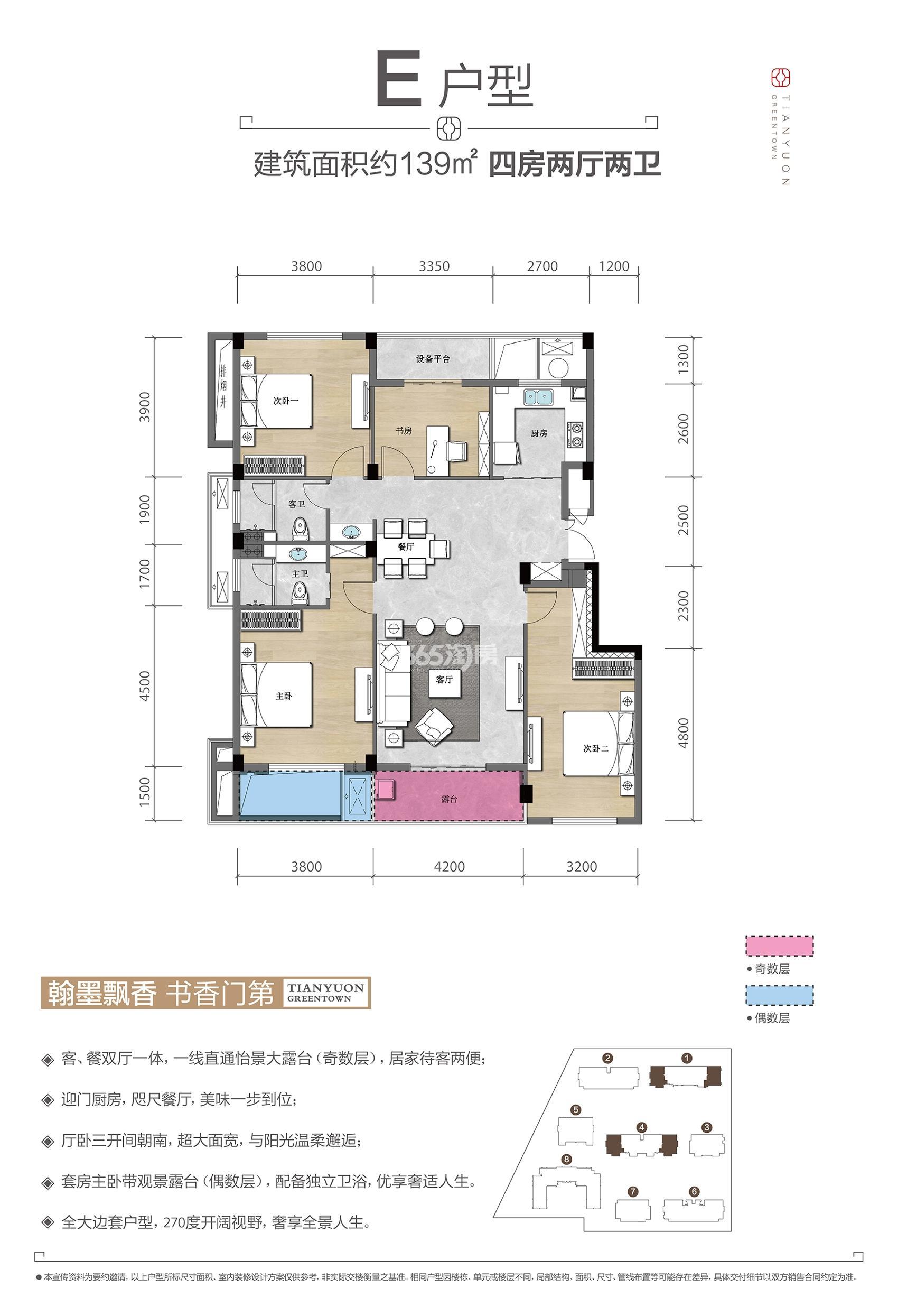 E户型4室2厅2卫 建筑面积139平米