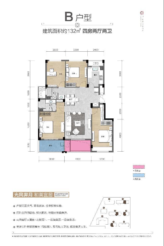 B户型4室2厅2卫 建筑面积132平米