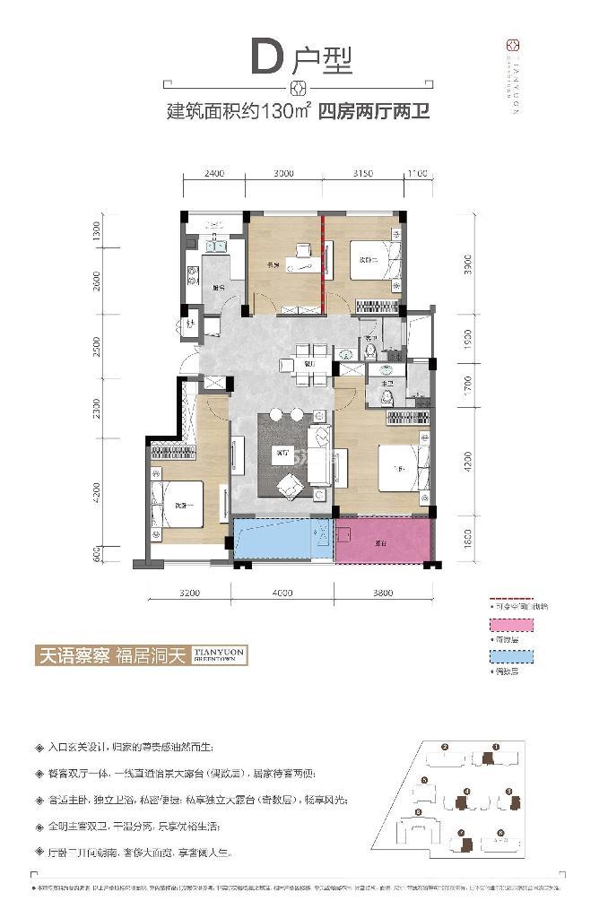D户型4室2厅2卫 建筑面积130平米