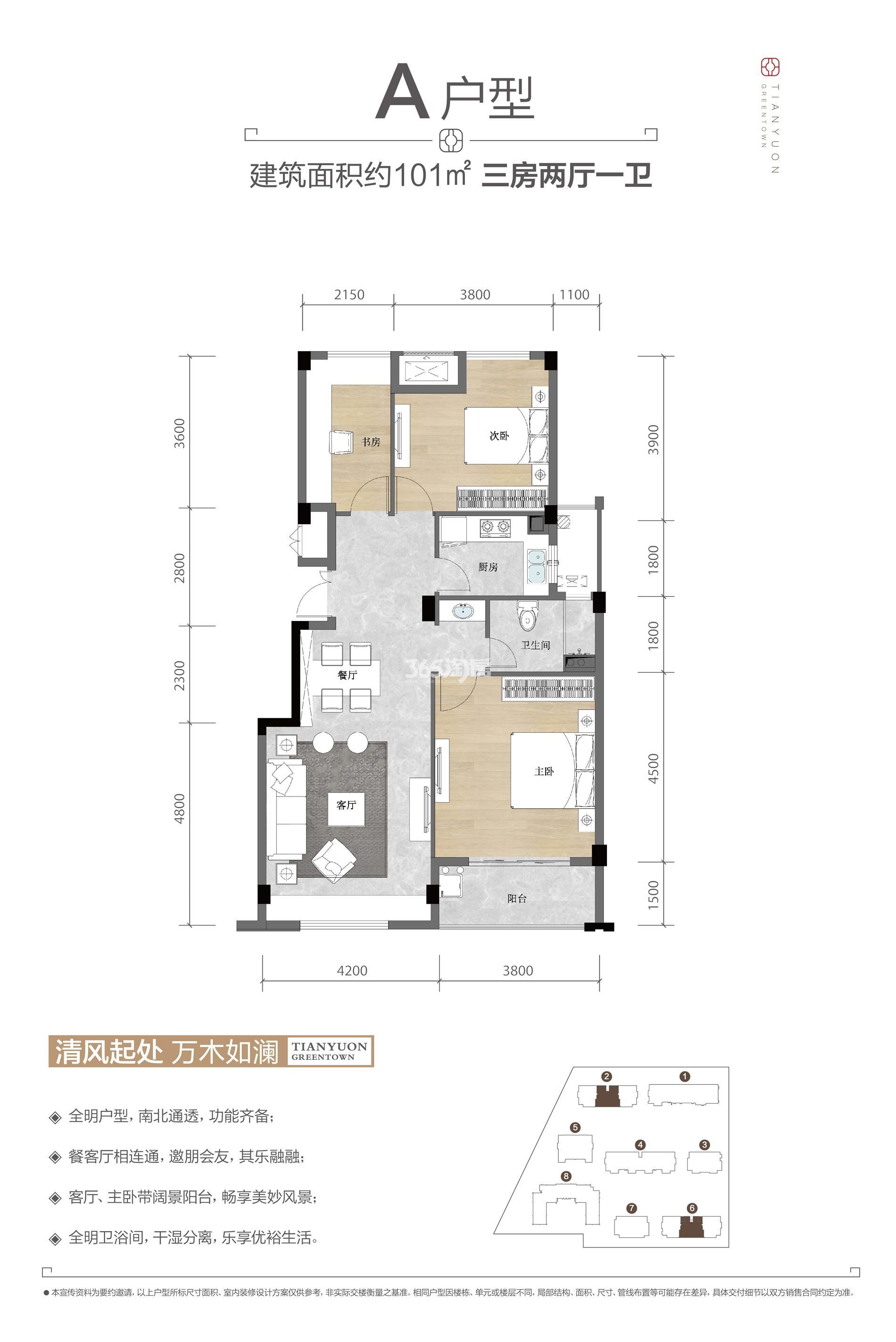 A户型3室2厅1卫 建筑面积101平米