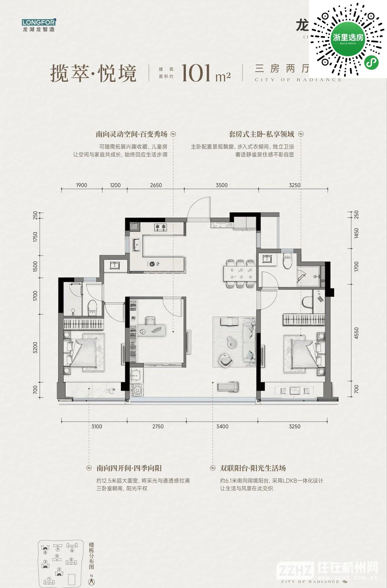 3室2厅2卫 建筑面积101平米