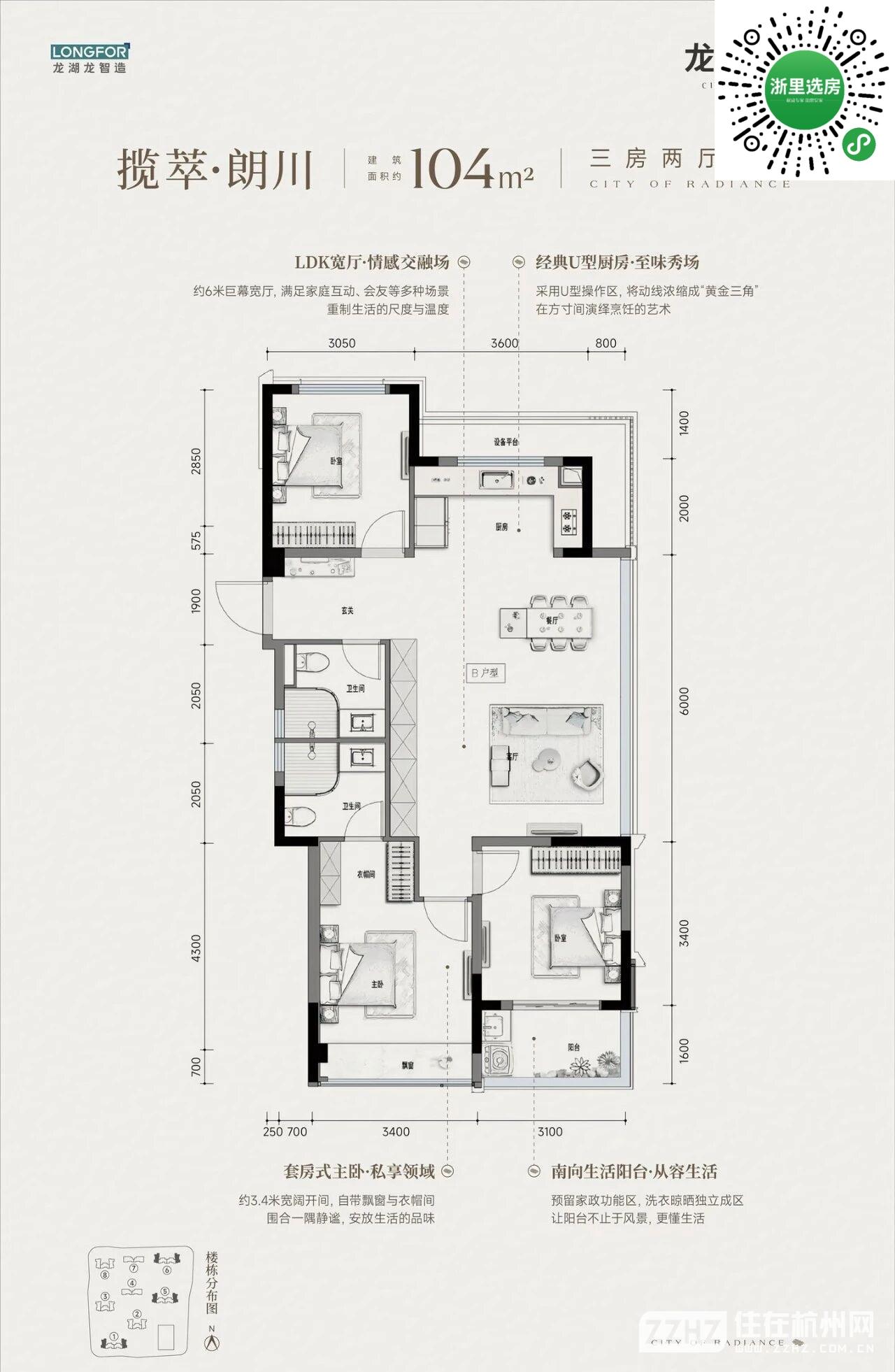 3室2厅2卫 建筑面积104平米